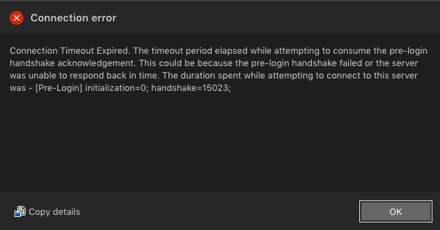 The "Connection Timeout expired" error commonly occurs in the following cases