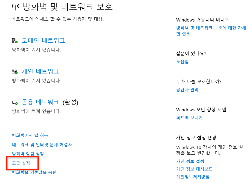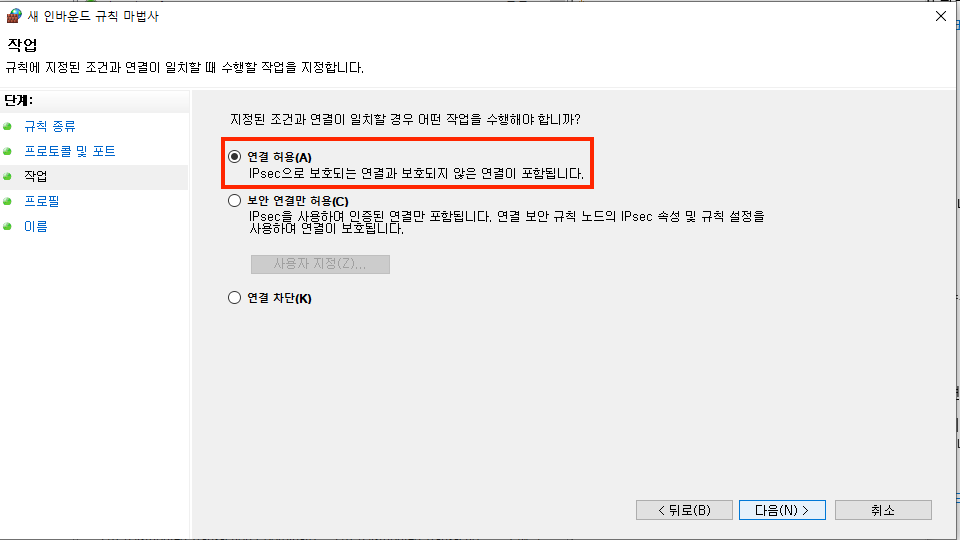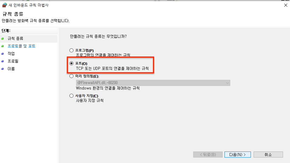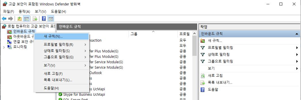 ※ 윈도우10에서 방화벽 포트 허용 규칙 만드는 법