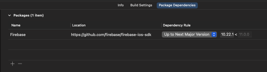 기존에 Firebase 모듈을 사용할 때 SPM에 v10.0.0을 사용중이었는데 10.22.1 에서는 해당 문제가 해결된것으로 확인되어 다음과 같이 수정했더니 AppStore Connect에 업로드가 정상적으로 된 것으로 확인하였다.